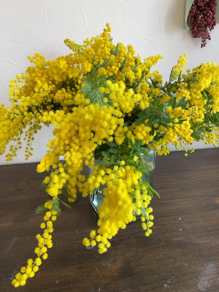 本日のオススメ🩵 ふわふわのミモザが入荷しました✨ ドライフラワーにもなるのでリースやスワッグにオススメです♪ #花いちもんめ #宇都宮 #花屋 #ミモザ #リース